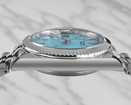 Sapphire crystal is a synthetic material widely used in watchmaking, created by crystallizing aluminum oxide (Al₂O₃) at extremely high temperatures (over 2,000°C). Despite sharing the name with natural sapphire, it is lab-grown and typically colorless (natural sapphires get their color from trace elements like chromium or iron). Its structure is highly dense and uniform, giving it exceptional durability and clarity—two key reasons it's a top choice for watch faces and case backs.