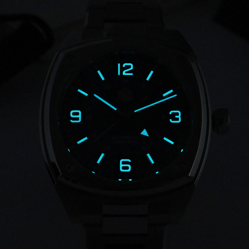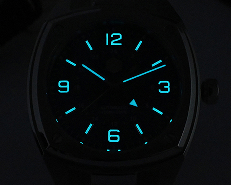 BGW-9 super lume, blue light on hands and hour markers.