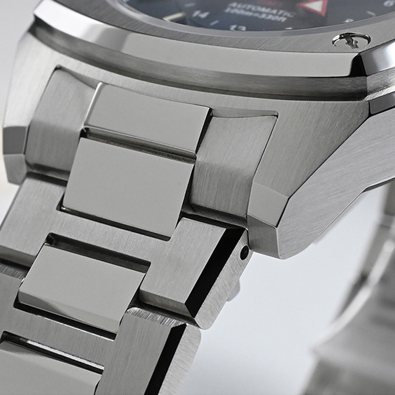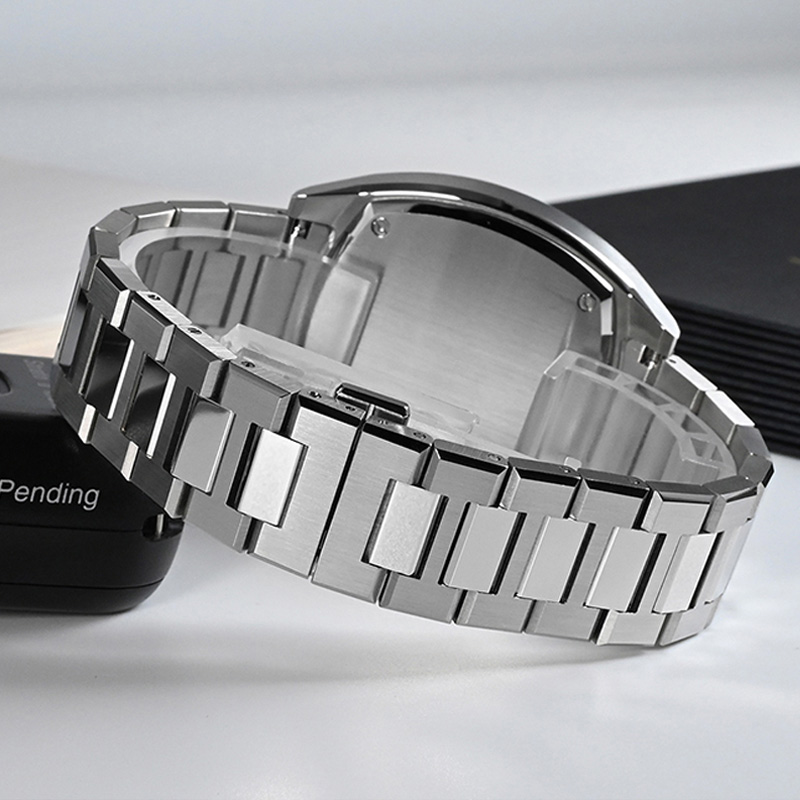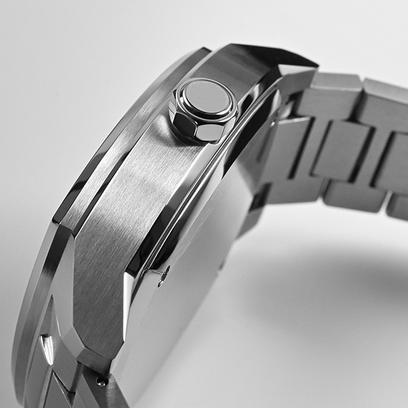 316L stainless steel watch case with brushed grain.