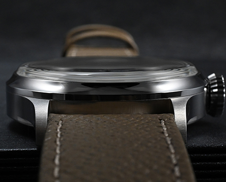 Brushed 316L stainless steel watch case with polished bezel.